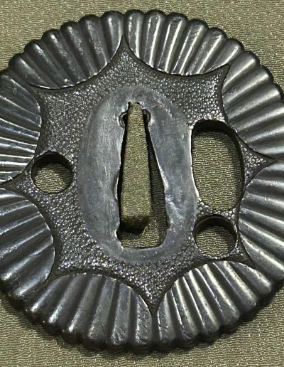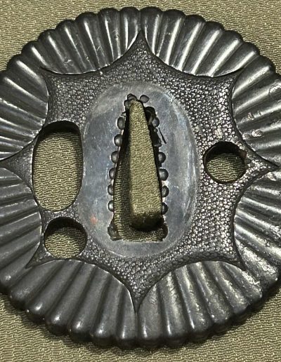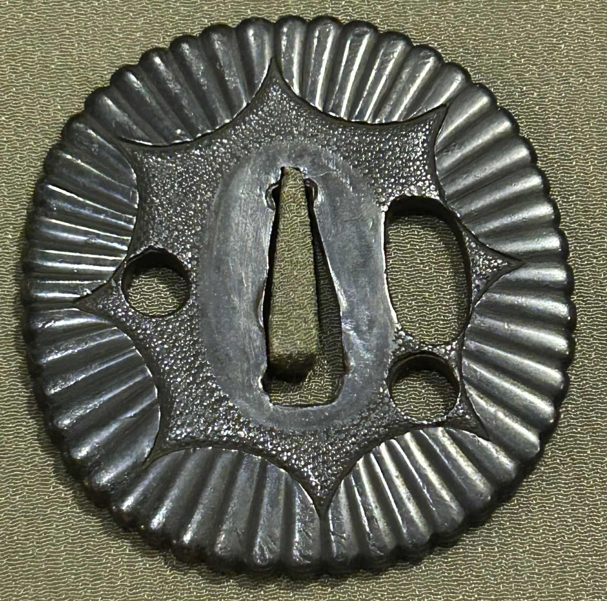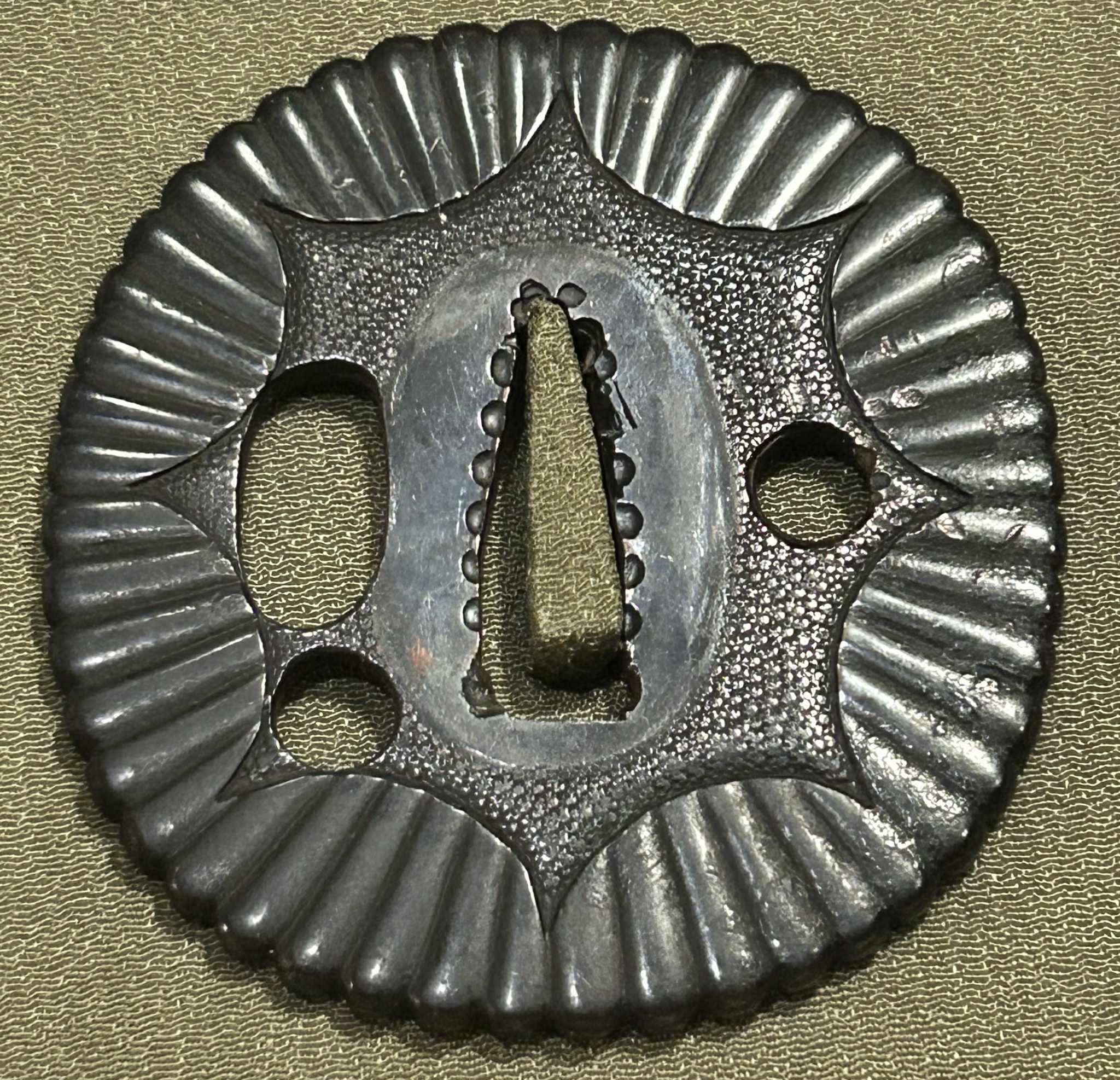 Shakudo Tsuba in the form of Kiku with Star Motif