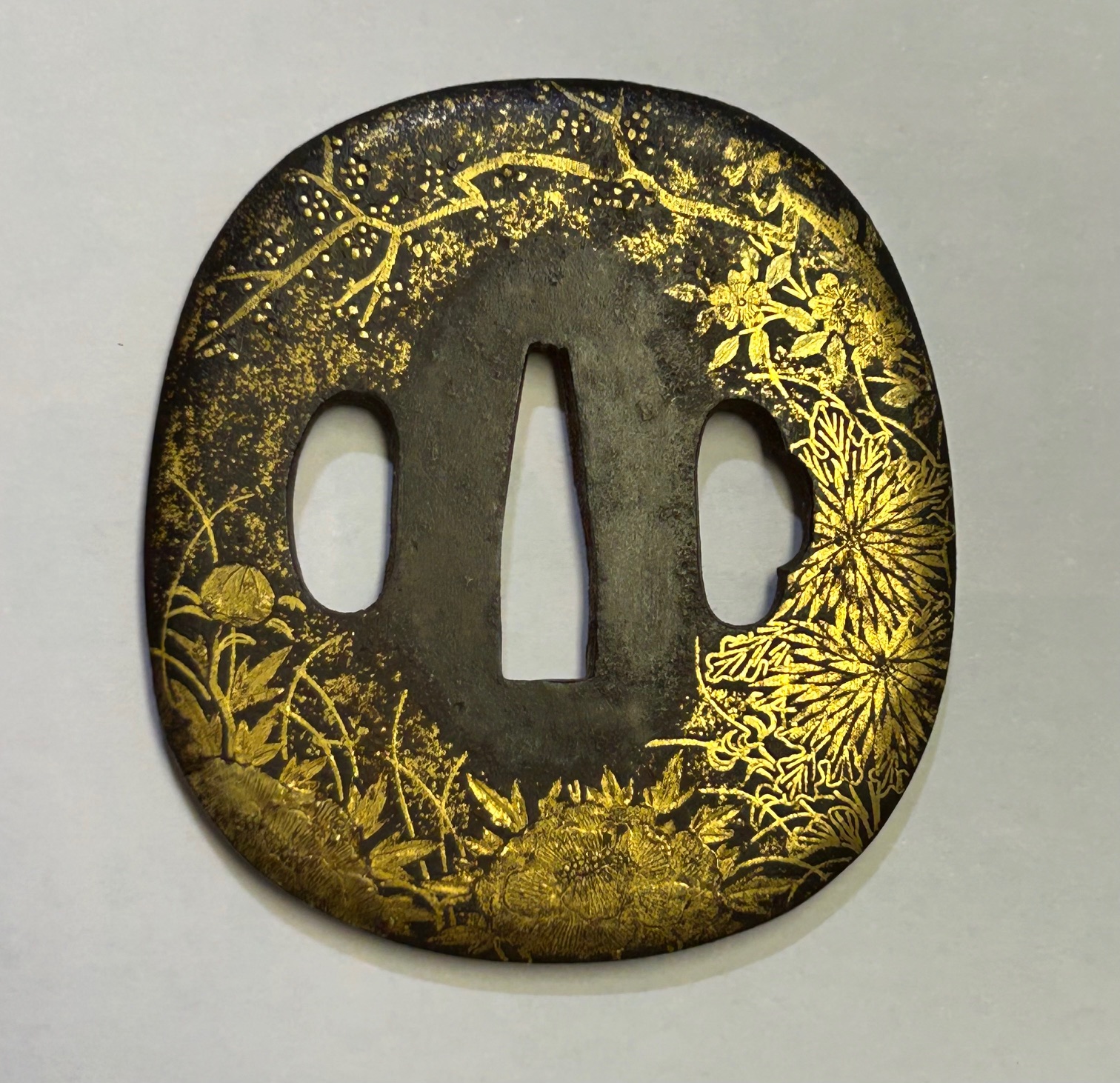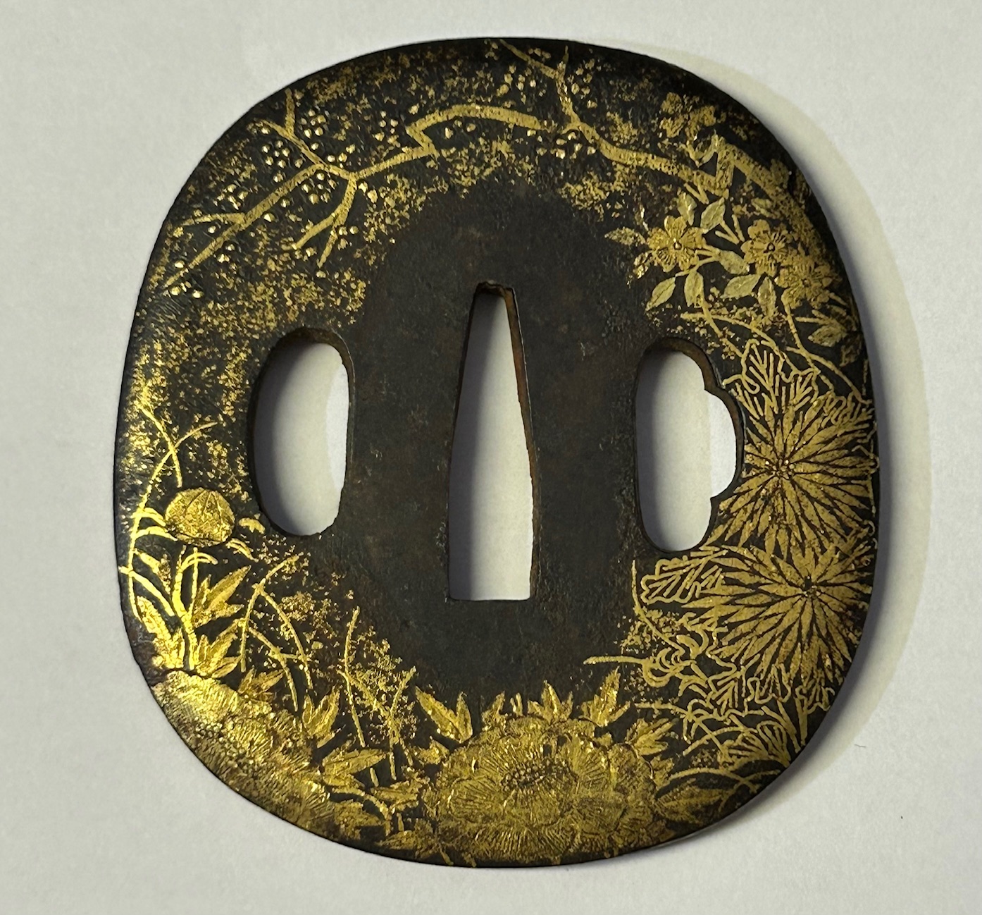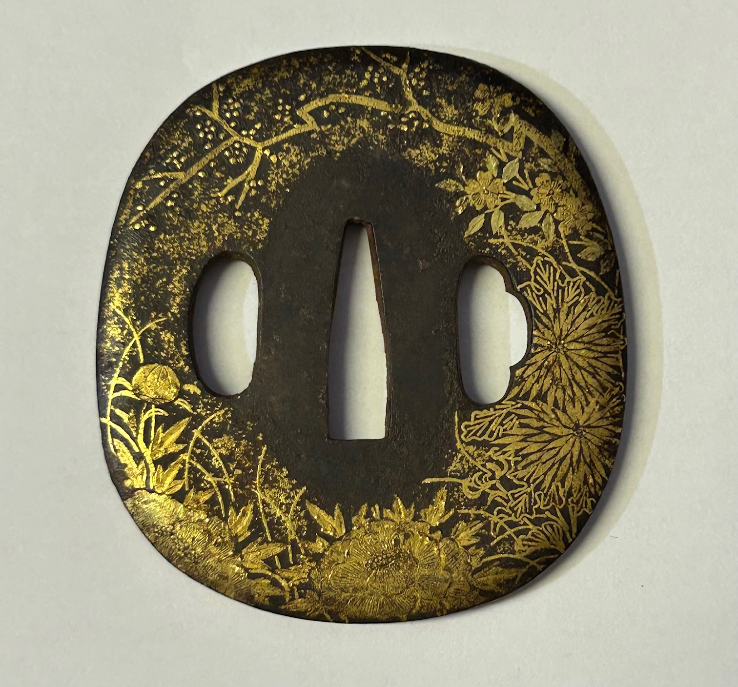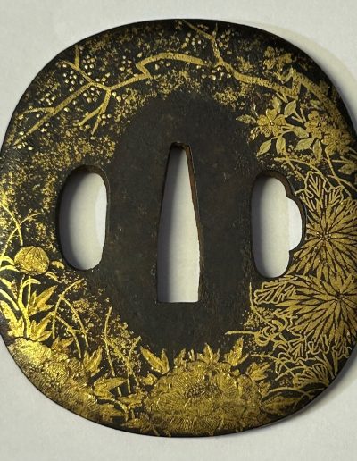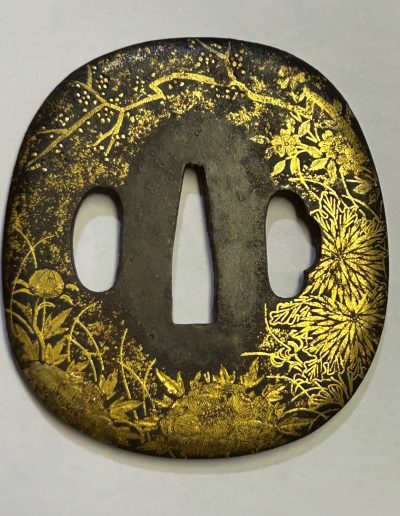 Stunning Antique Japanese Wakizashi Tsuba with beautiful plum tree and floral motif