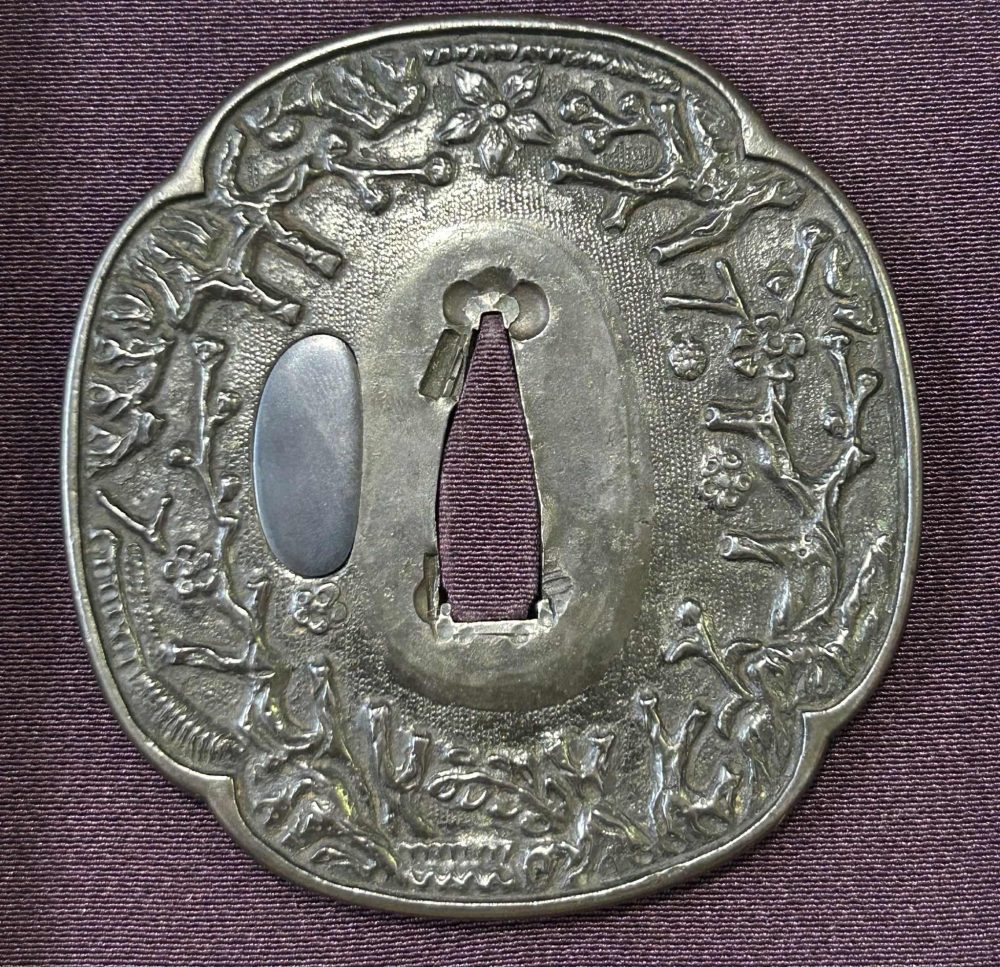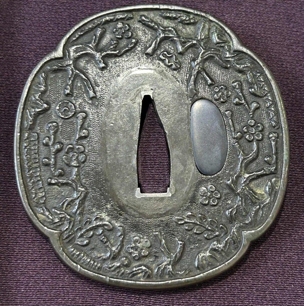 Shakudo Tsuba with Motif of Plants