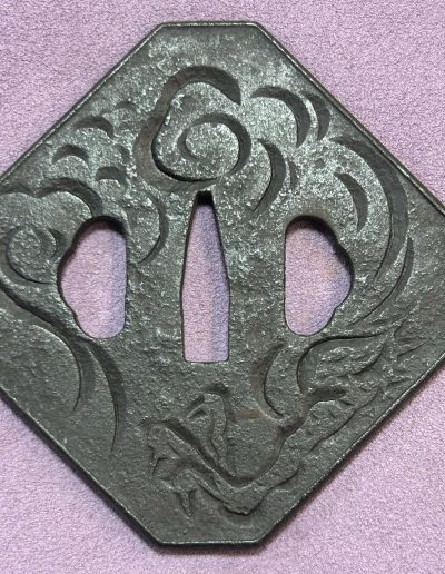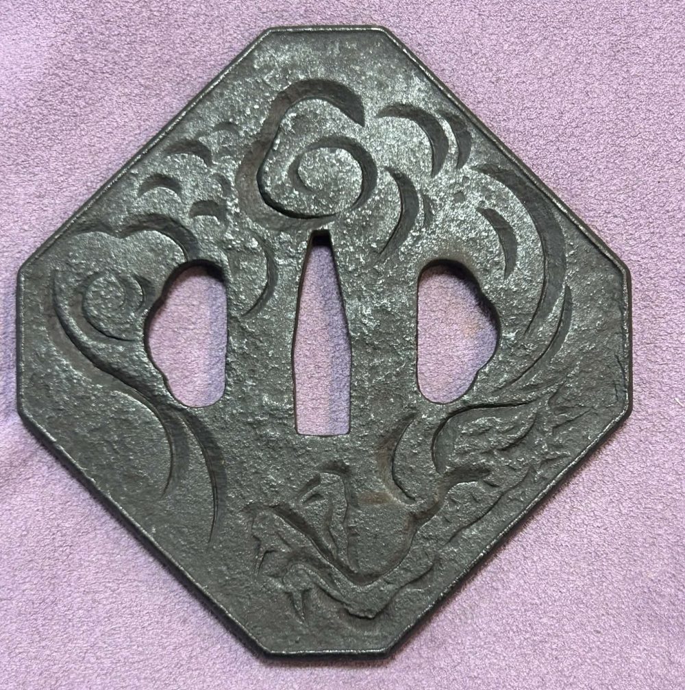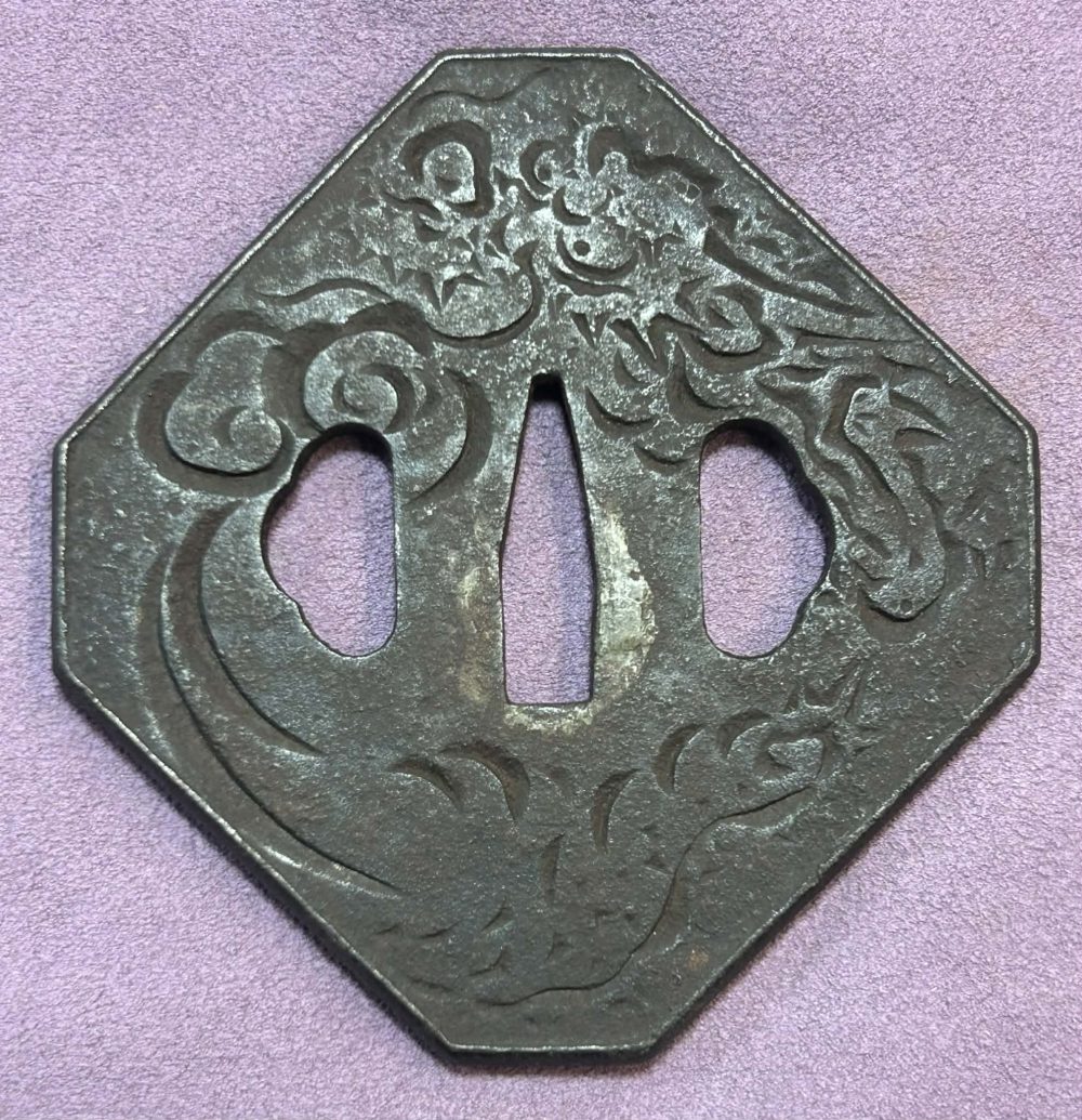 Well CarvedĀ Katakiribori Dragon Tsuba looks like Sekibun style carving