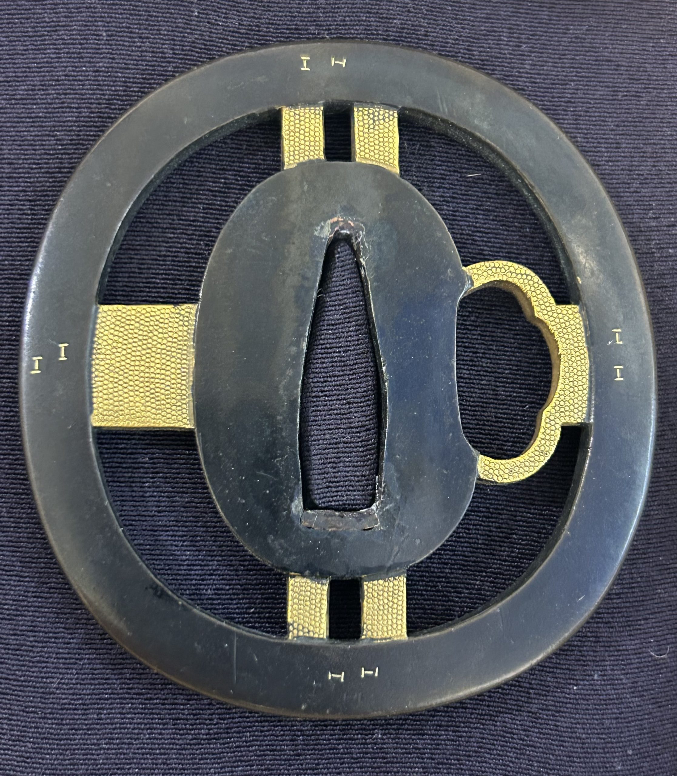 During the Edo period (1603-1868), the Tokugawa shogunate strictly prohibited Christianity, forcing Japanese converts to practice their faith in secret. To evade persecution, they created everyday objects, including sword fittings like the tsuba, with hidden symbols. The term “Ko-Kinko” refers to early metalworkers (kinko) from the Muromachi period or early Edo period who often worked in metals other than iron, such as copper alloys (yamagane), and whose functional designs evolved into more elaborate, decorative pieces over time.