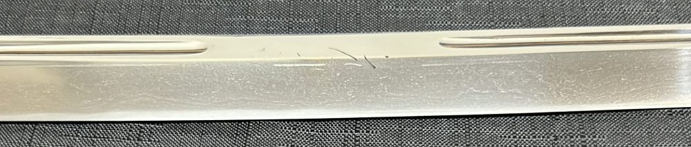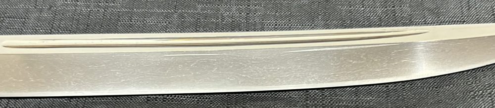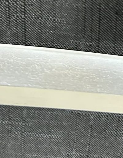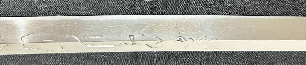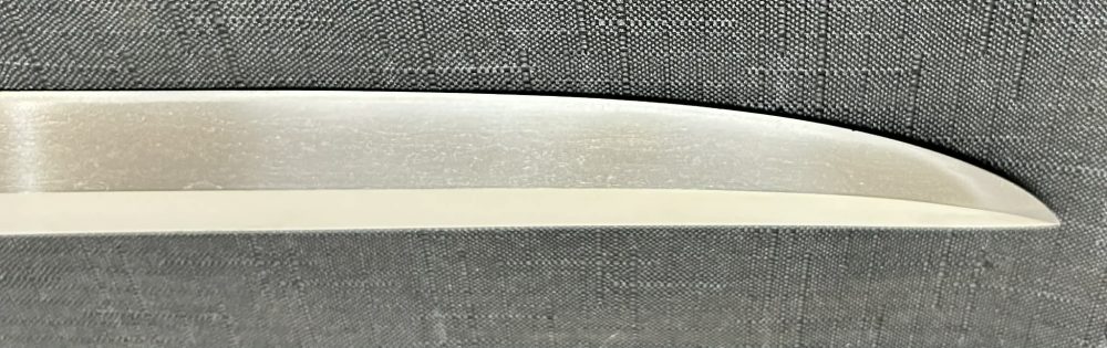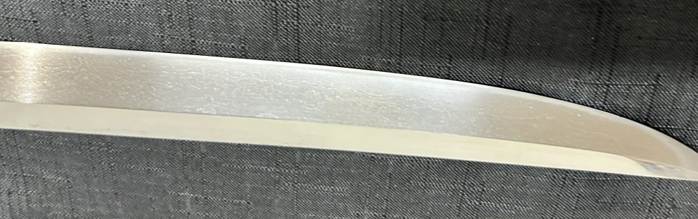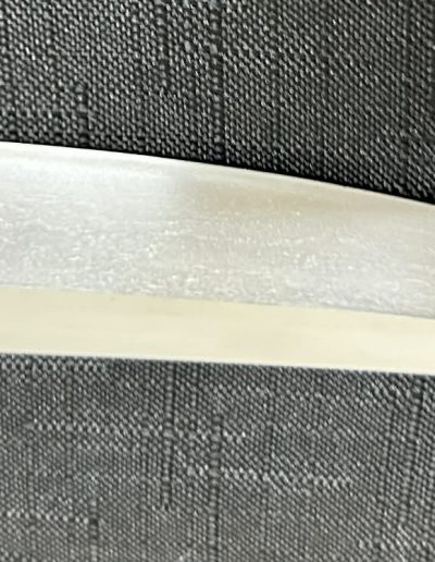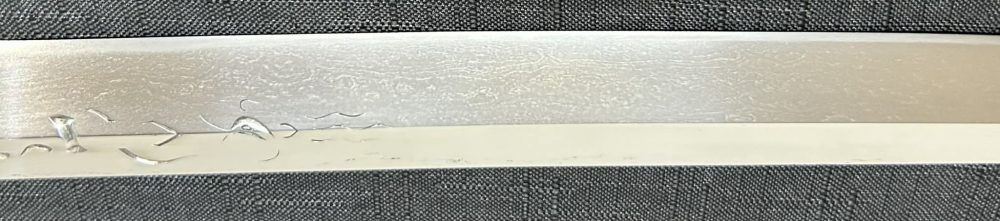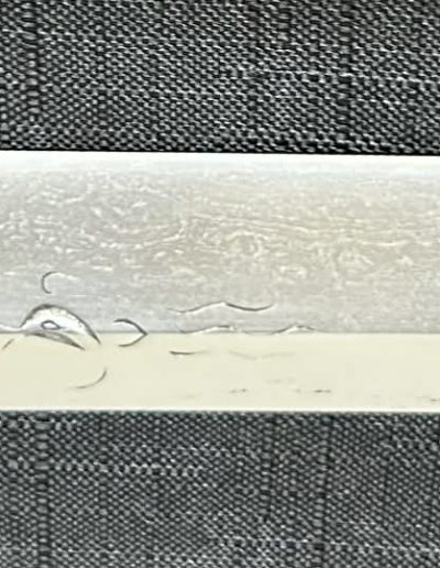 Jigane (Steel Surface): A dense ko-itame (small wood-grain) pattern, often mixed with masame (straight grain), resulting in a whitish jigane (steel).
