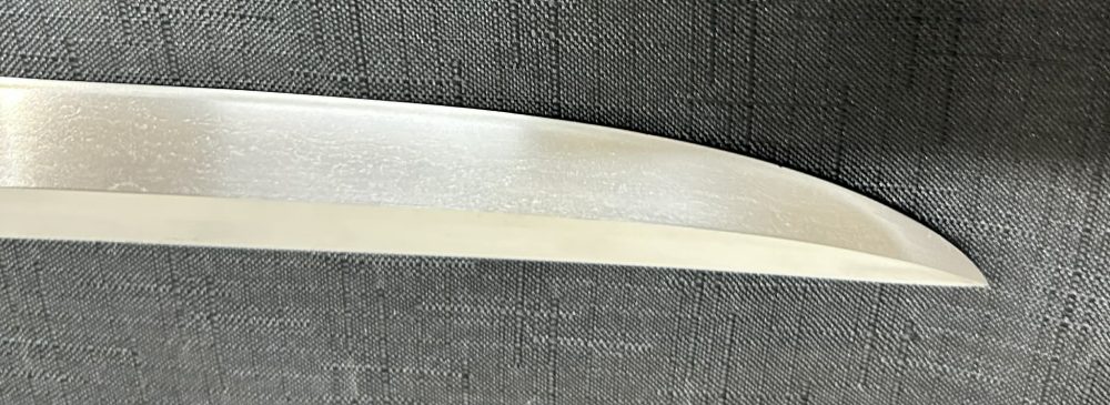 Boshi (Tip Temper Line): A distinctive “Mihara boshi” with a soft ko-maru (small round) turn-back, which often ends abruptly.