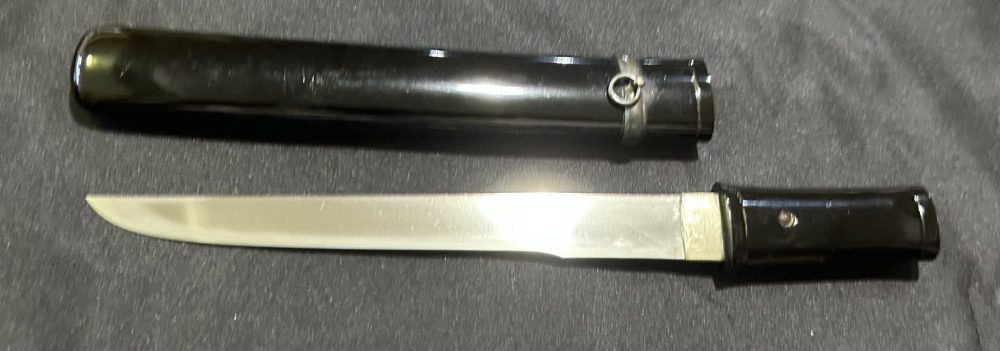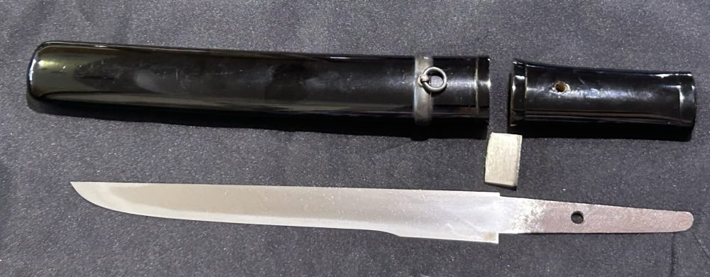 Okogatana mounted in Aikuchi Koshirae in full polish, well forged blade with nice Hamon