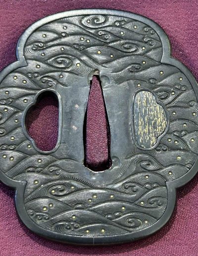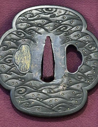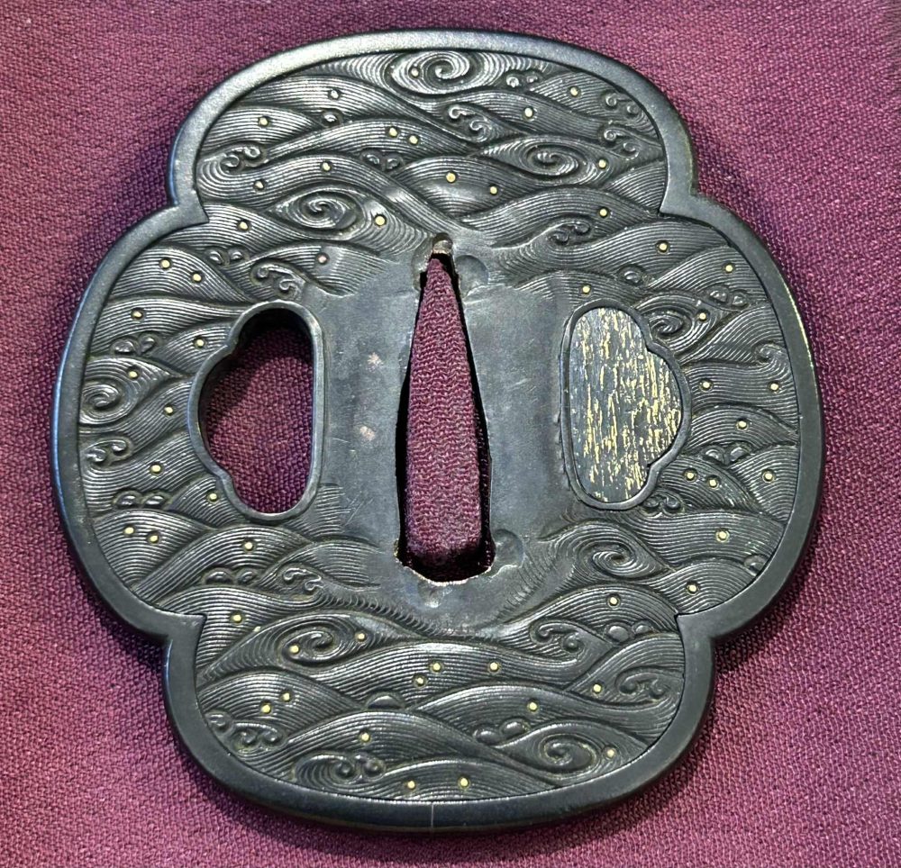 High Quality Shakudo wave motif Owari Kozenji school Tsuba