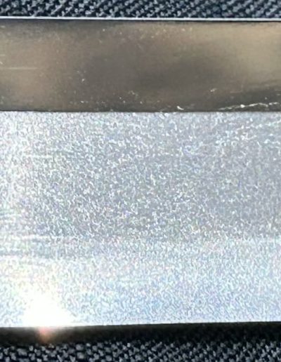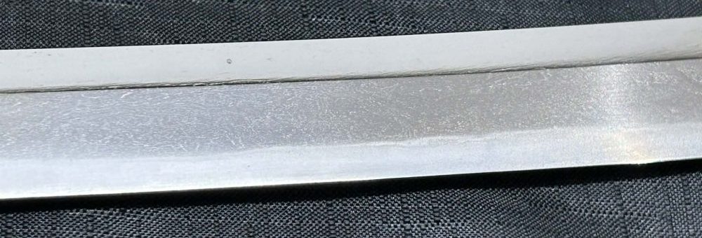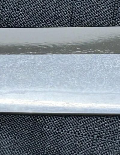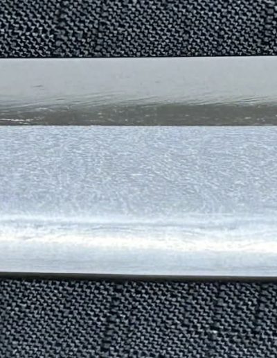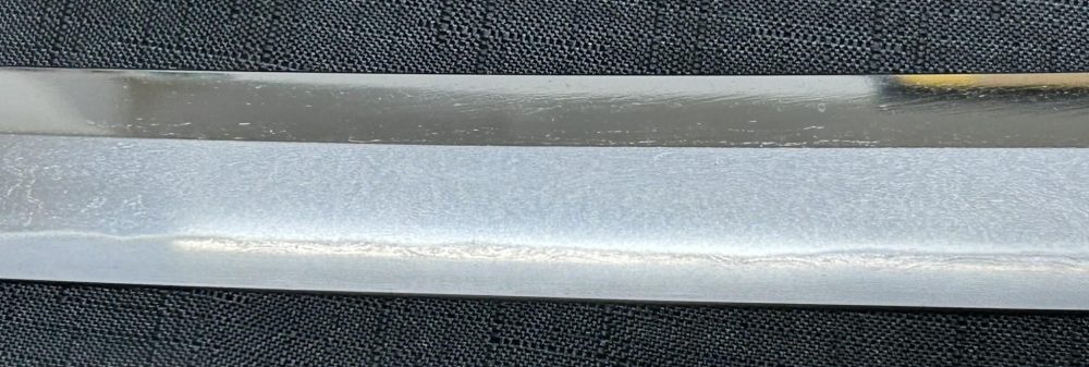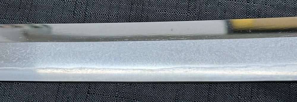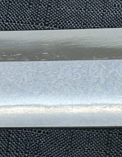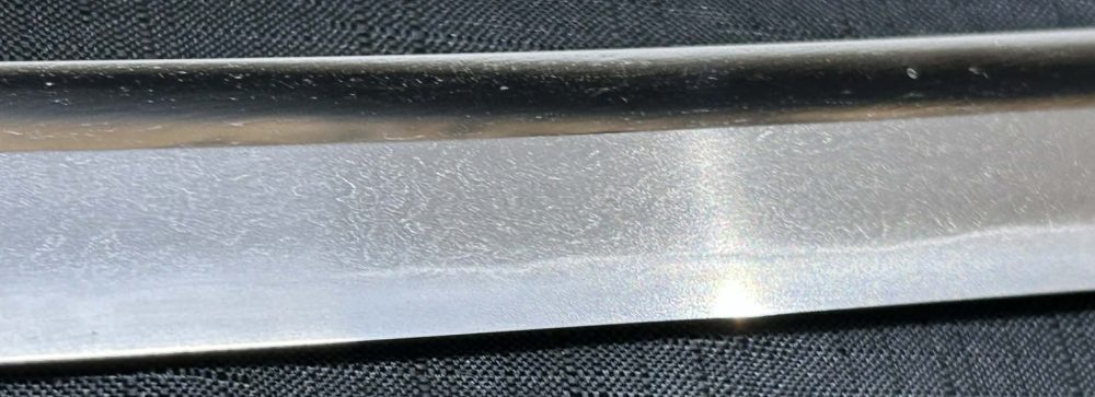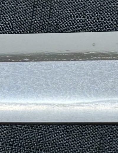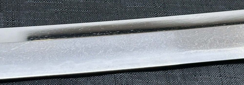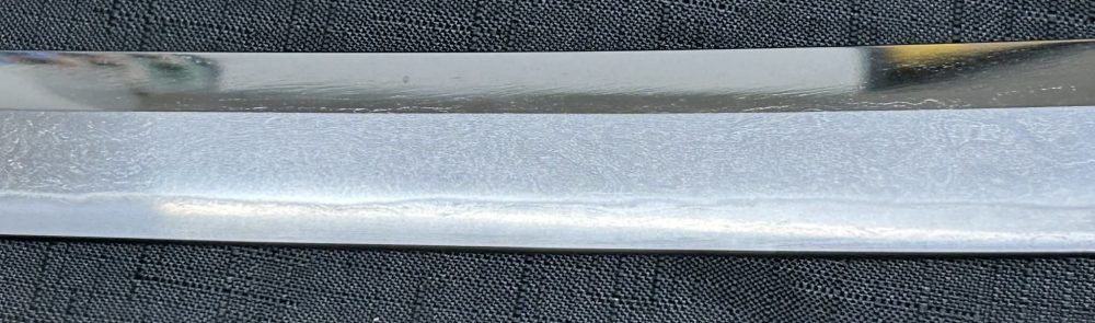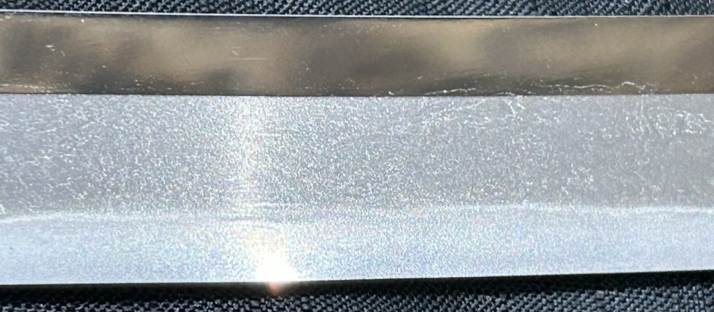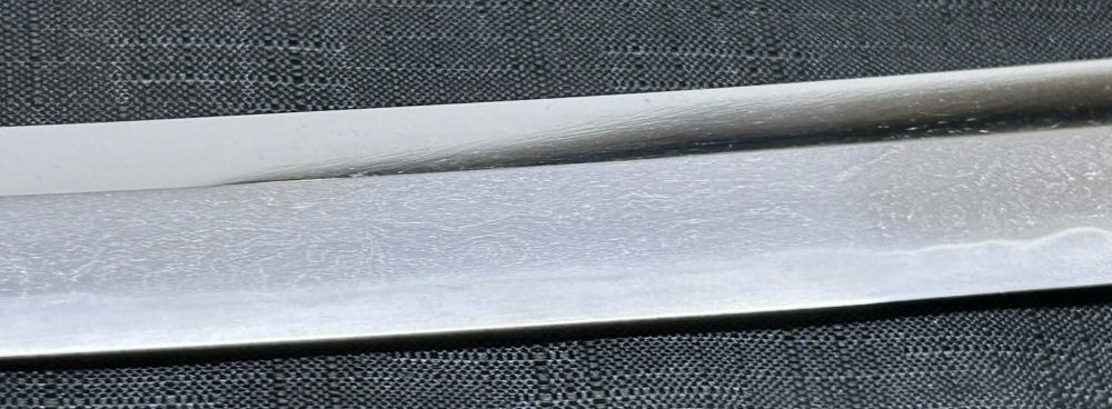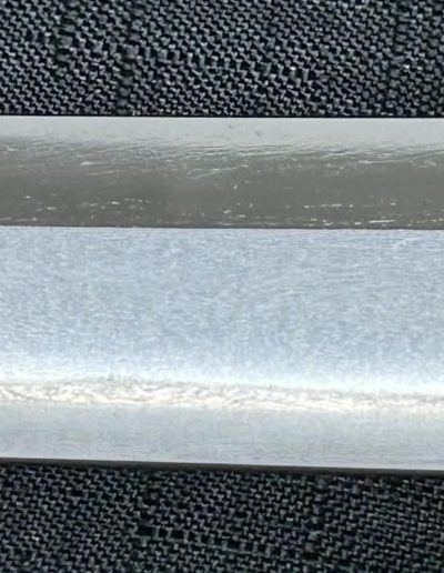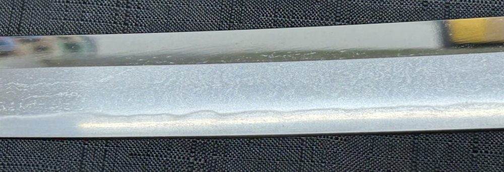 Jigane (Steel Surface): A dense ko-itame (small wood-grain) pattern, often mixed with masame (straight grain), resulting in a whitish jigane (steel).