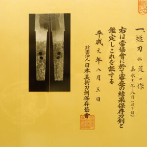 And he was allowed to inscribe the Tokugawa family emblem on these swords. Furthermore, in 1854, he was ordered to forge a sword for sending to the USA and created Naginata for the UK, which was gifts from Japan for diplomatic relations. This fact indicates that Korekazu was one of the Edo government’s trusted swordsmiths and played an essential role at the end of the Edo period.