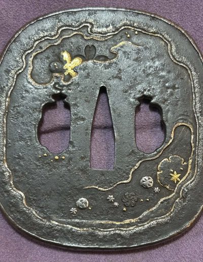 Tanaka Tsuba Motif of moon Snowflakes and Cherry blossoms